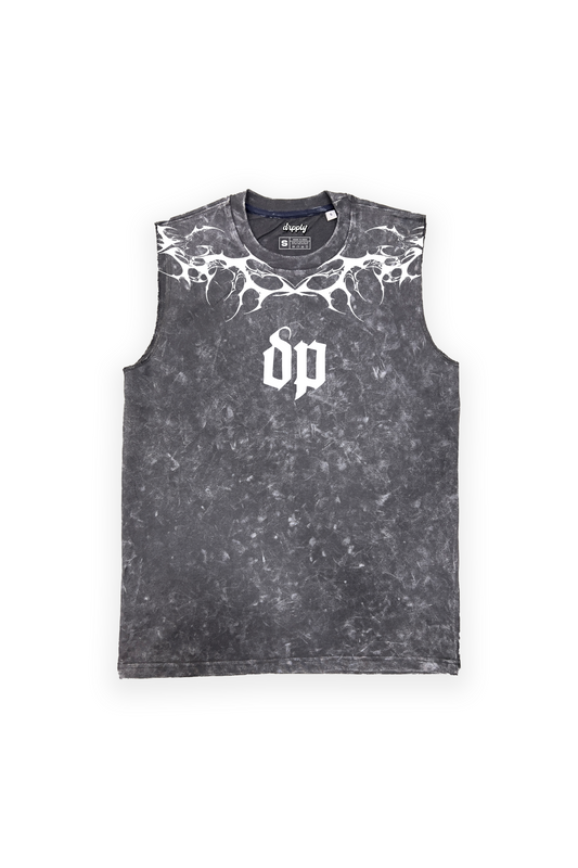 "RULER OF UNDERWORLD" ACID-WASH OVERSIZED VEST