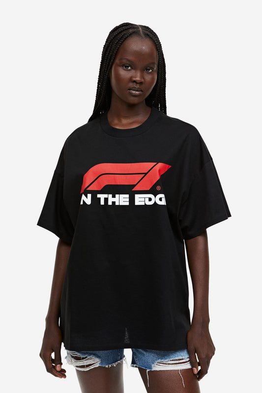 Oversized Black F1 On The Edge T-shirt - Heavy 250 GSM Cotton